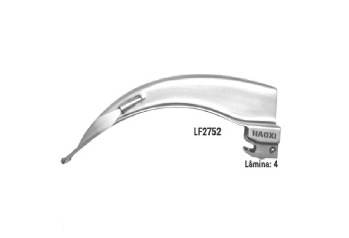 A Lâmina Curva N° 4 com Fibra Óptica para Laringoscópio – Haoxi é indicada para intubação orotraqueal em adultos, especialmente em pacientes que necessitam de maior alcance e manuseio facilitado.